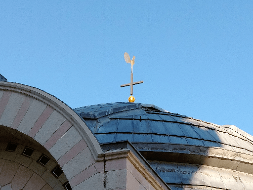 (Photo of the cross with a rooster on top at The Church of St. Peter in Gallicantu. According to tradition, this is the site where Peter denied Jesus three times and then heard the cock crow.)